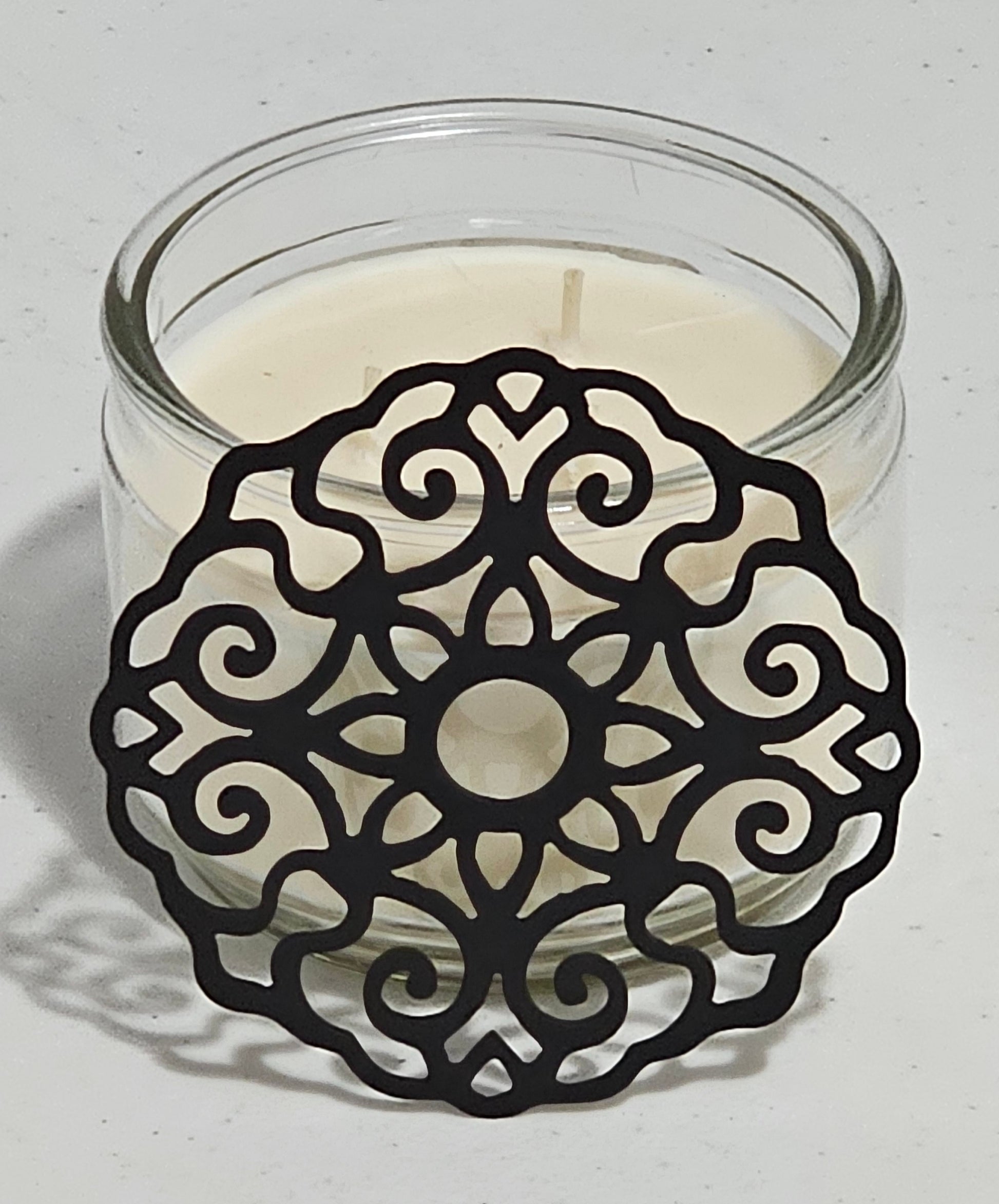 Placed on top of your jar candle, this topper helps regulate airflow and heat distribution, reducing tunneling and improving overall candle performance. The ornate filigree pattern brings a classic vintage feel to any room, making it a functional accessory as well as a stunning decorative accent.